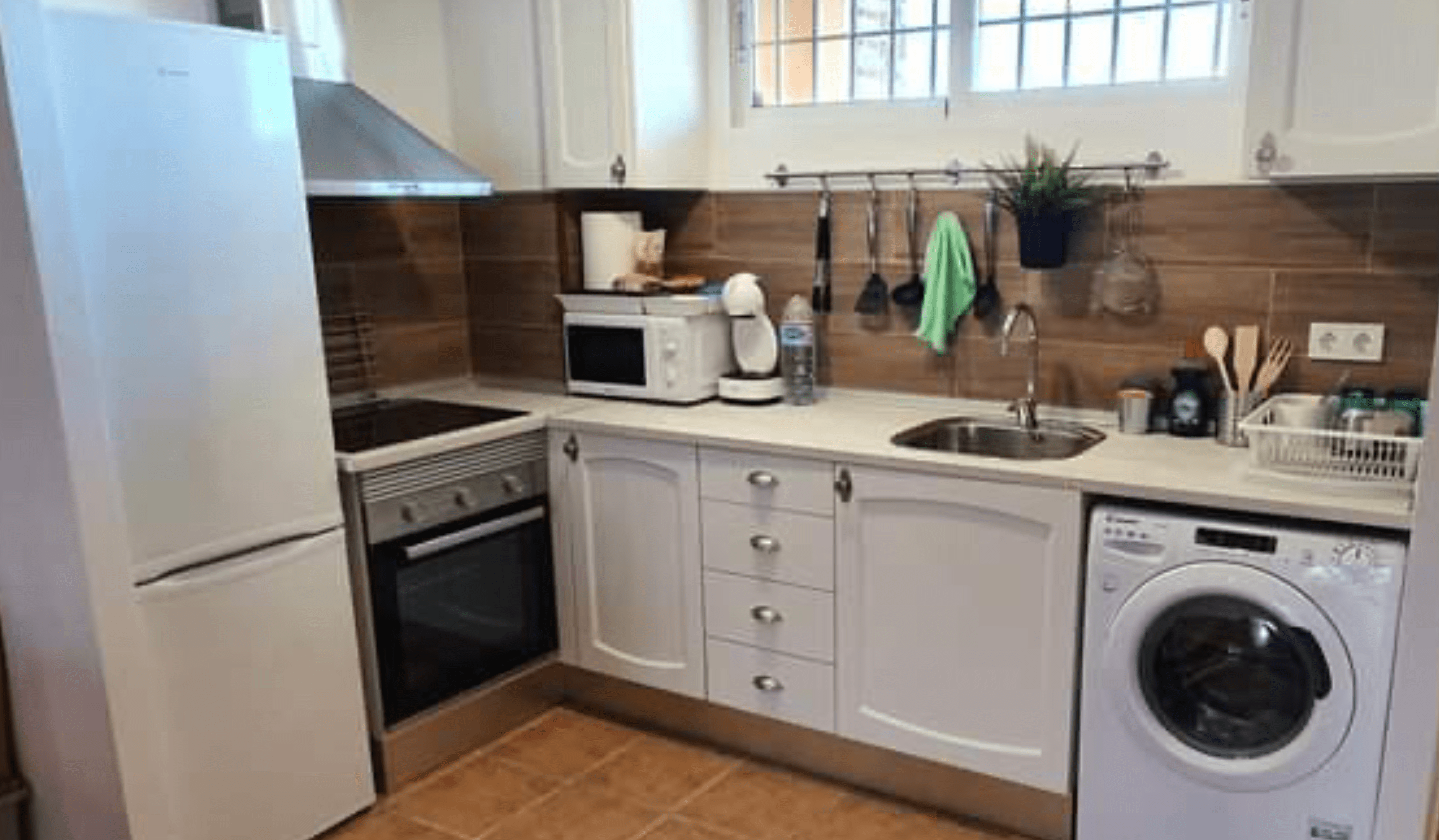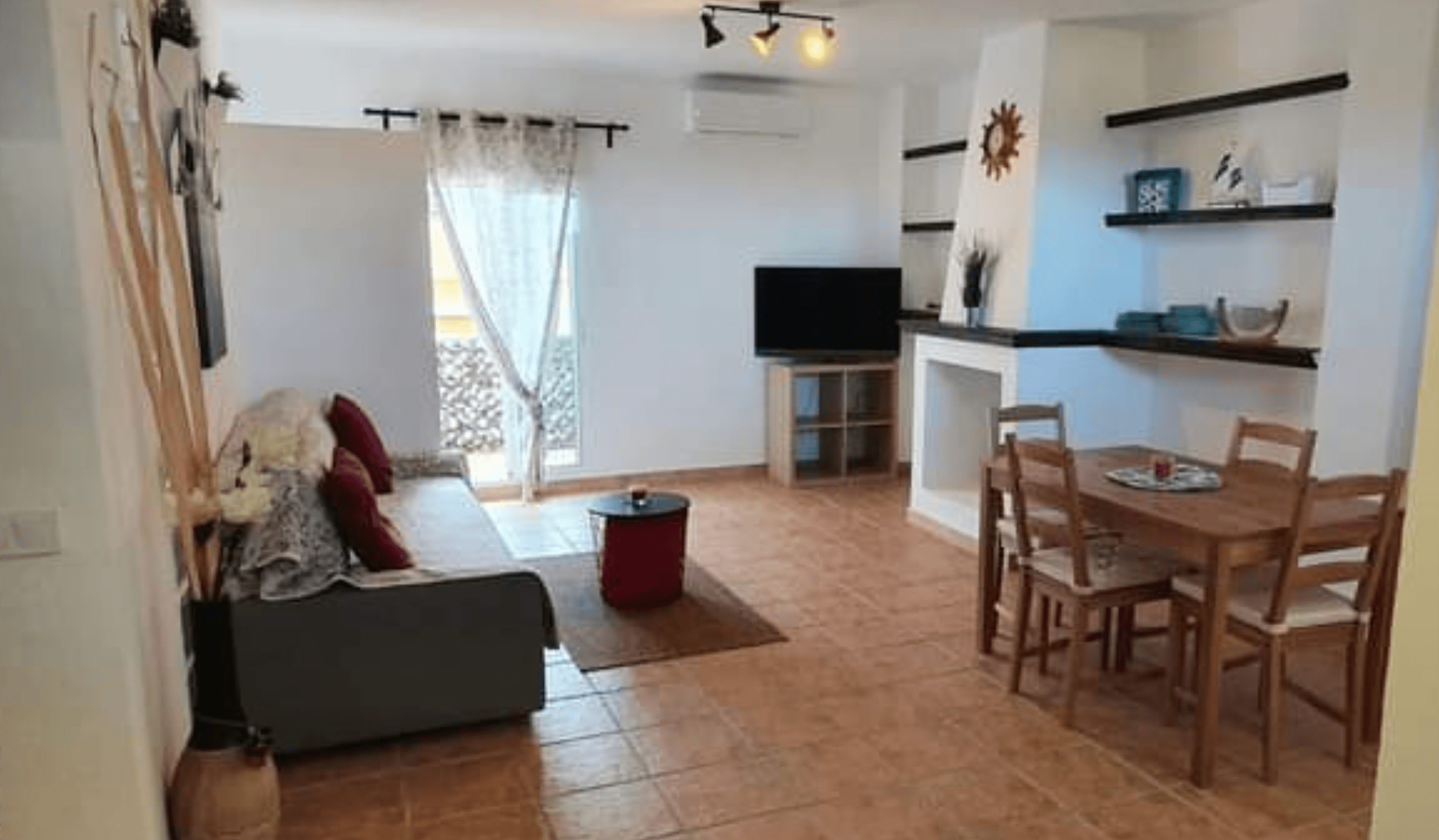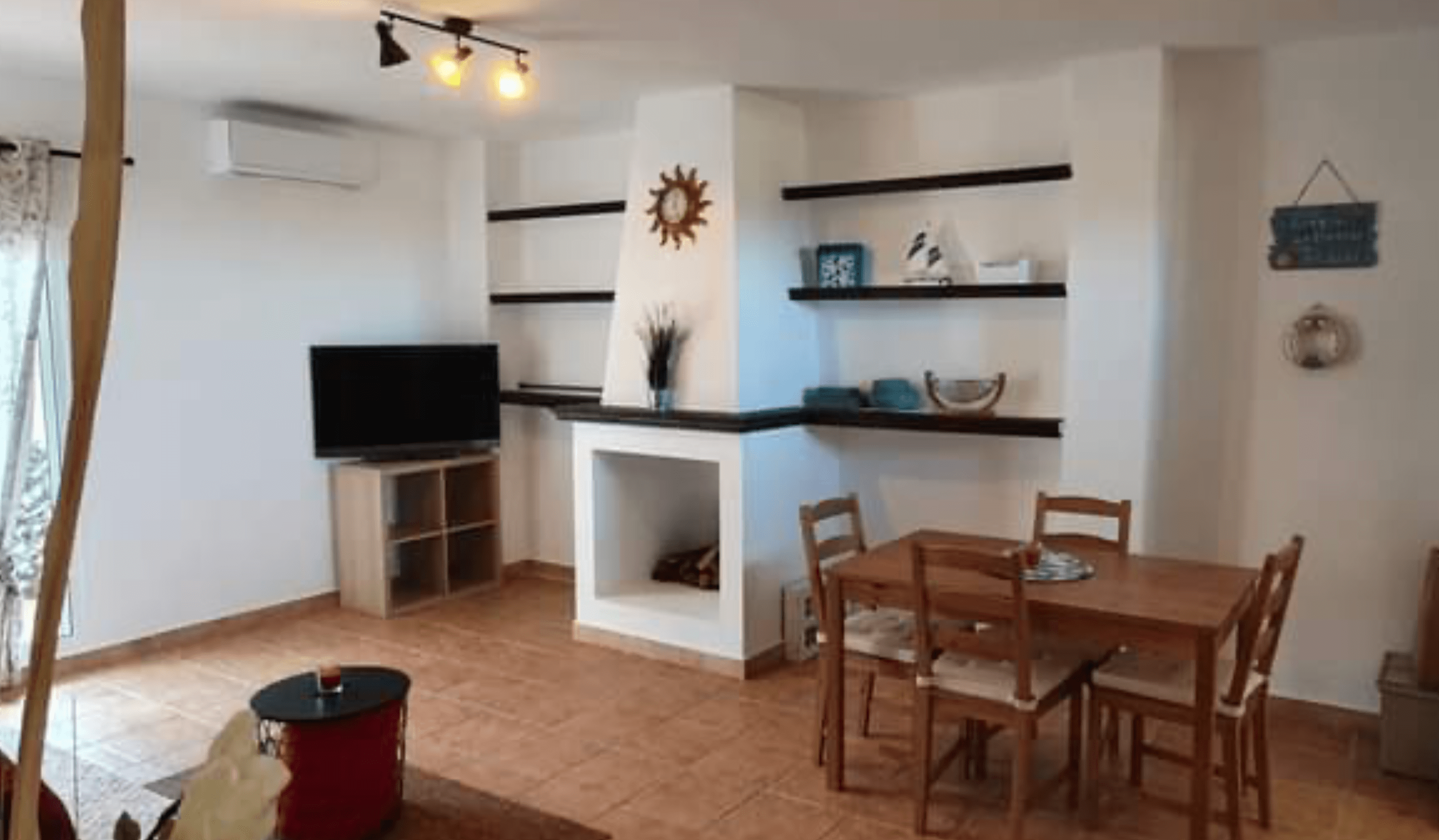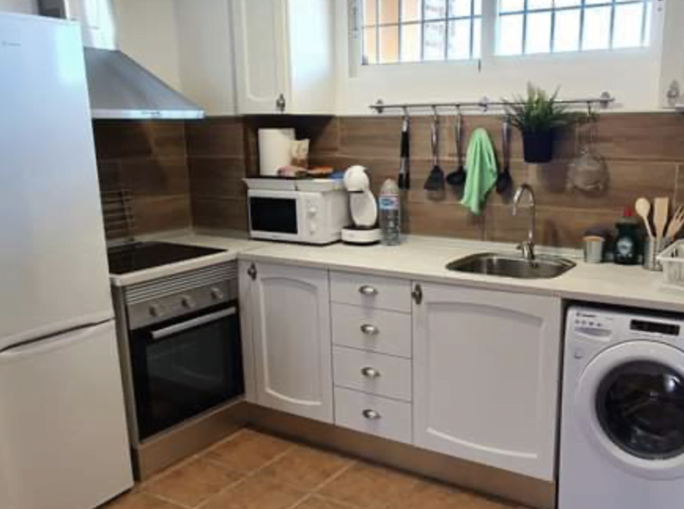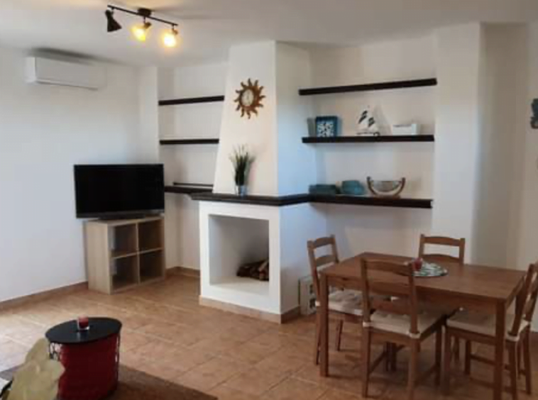 Apartamento de 1 dormitorio reformado y amueblado en una segunda planta sin ascensor. Dispone de sofá-cama, amplio baño completo con bañera, cocina americana y habitación con cama de matrimonio y vestidor. Dispone de trastero y terraza. Incluye Aire Acondionado, TV 40″, lavadora, vitrocerámica y horno. Complejo con portería, parking y piscina.